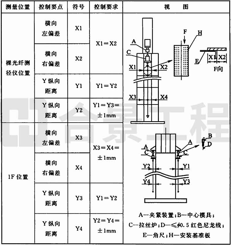 5 紫外固化裝置中心與拉絲爐中心垂線的允許偏差應(yīng)為±0.5mm。