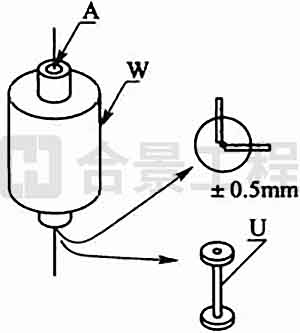 A-上爐口中心;W-拉絲爐;U-定型管