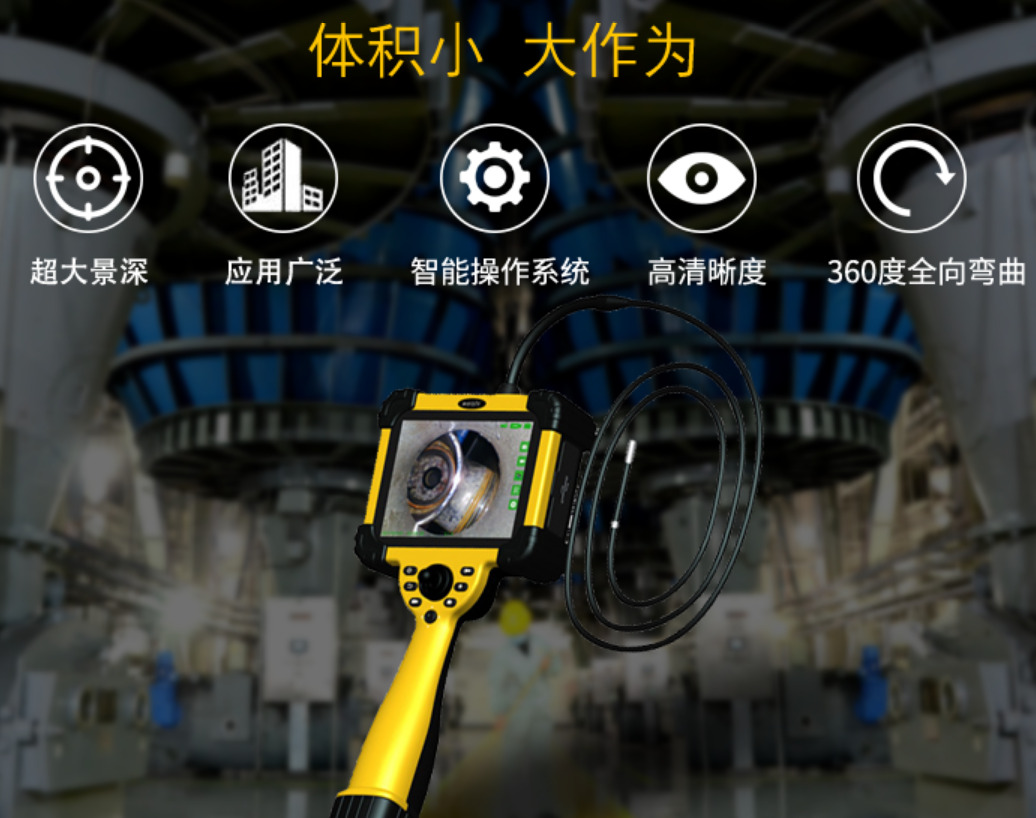 微視WS-Y系列360°任意向高清數(shù)碼工業(yè)內(nèi)窺鏡采用國際領(lǐng)先機(jī)械式操作桿技術(shù),可實(shí)現(xiàn)探頭360°全方位旋轉(zhuǎn),任何復(fù)雜的檢測環(huán)境都可對應(yīng),并且產(chǎn)品防油、防水、防腐蝕等設(shè)計(jì),無論是在水下,還是管道都可以體現(xiàn)出其檢測功能的卓越;產(chǎn)品小巧便攜,集拍照、錄像等功能于一體;并且兼?zhèn)渑恼?,調(diào)節(jié)亮度,使被測物更清晰呈現(xiàn);數(shù)據(jù)存儲(chǔ)簡單方便多種方式選擇,聲音記錄,通過音頻進(jìn)行檢測部位的注釋等功能于一體,是當(dāng)今工業(yè)內(nèi)窺鏡檢測行業(yè)中獨(dú)樹一幟的搞斷產(chǎn)品!微視WS-Y系列工業(yè)內(nèi)窺鏡采用IP7防水標(biāo)準(zhǔn)設(shè)計(jì),鏡頭外殼采用不銹鋼;在管道中進(jìn)行檢測,在環(huán)境比較黑暗或光線不足的地方,微了解決這個(gè)問題,微視WS-Y系列工業(yè)內(nèi)窺鏡探頭采用行業(yè)內(nèi)獨(dú)特的光纖傳輸照明,8節(jié)亮度調(diào)節(jié),并且采用高分辨工業(yè)級液晶顯示器實(shí)時(shí)觀察內(nèi)部情況;圖像清晰、操作簡單、有效探測距離長、使用范圍廣、并且可以和電腦、平板等連接實(shí)現(xiàn)存儲(chǔ)的優(yōu)點(diǎn)。